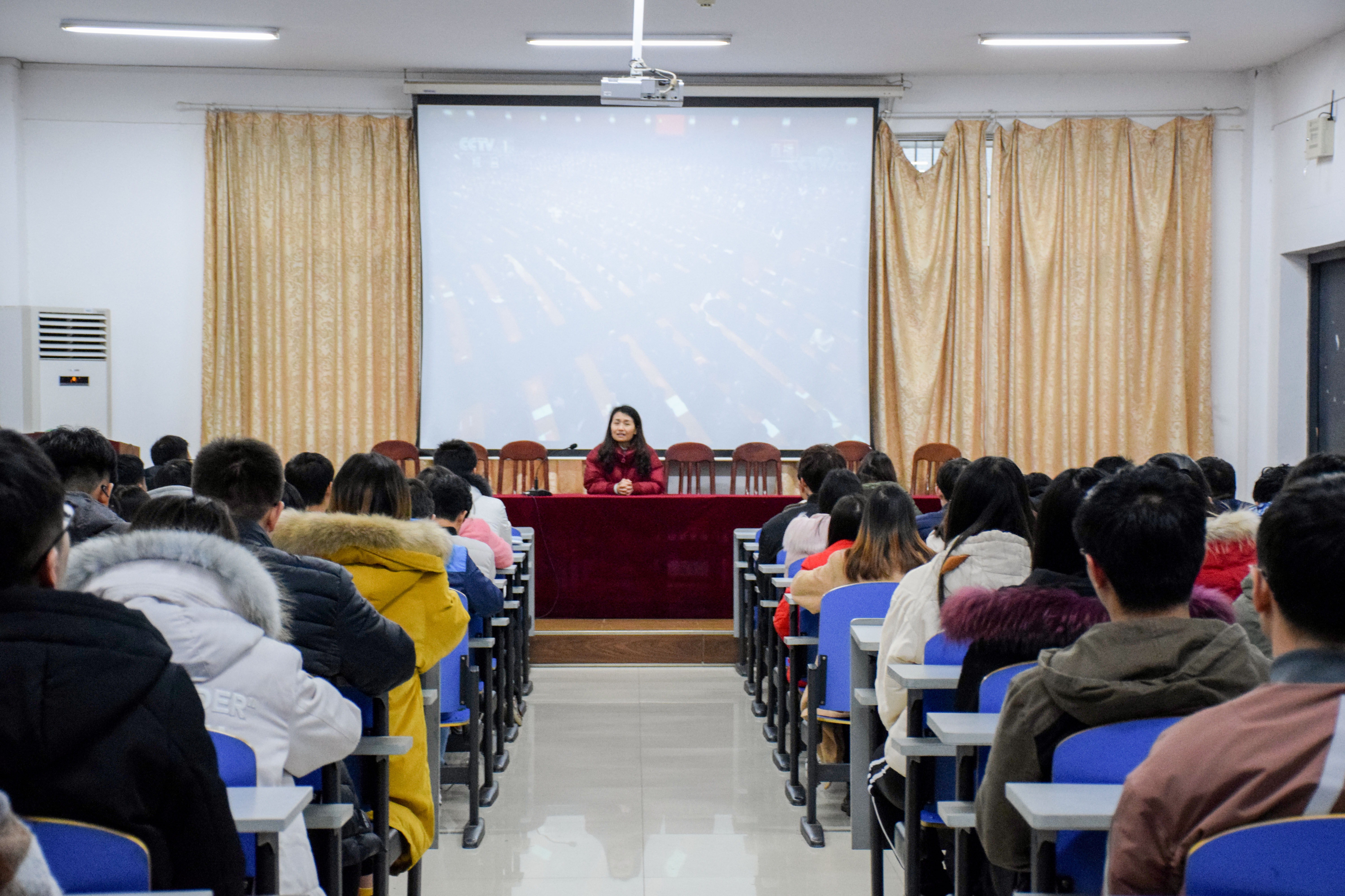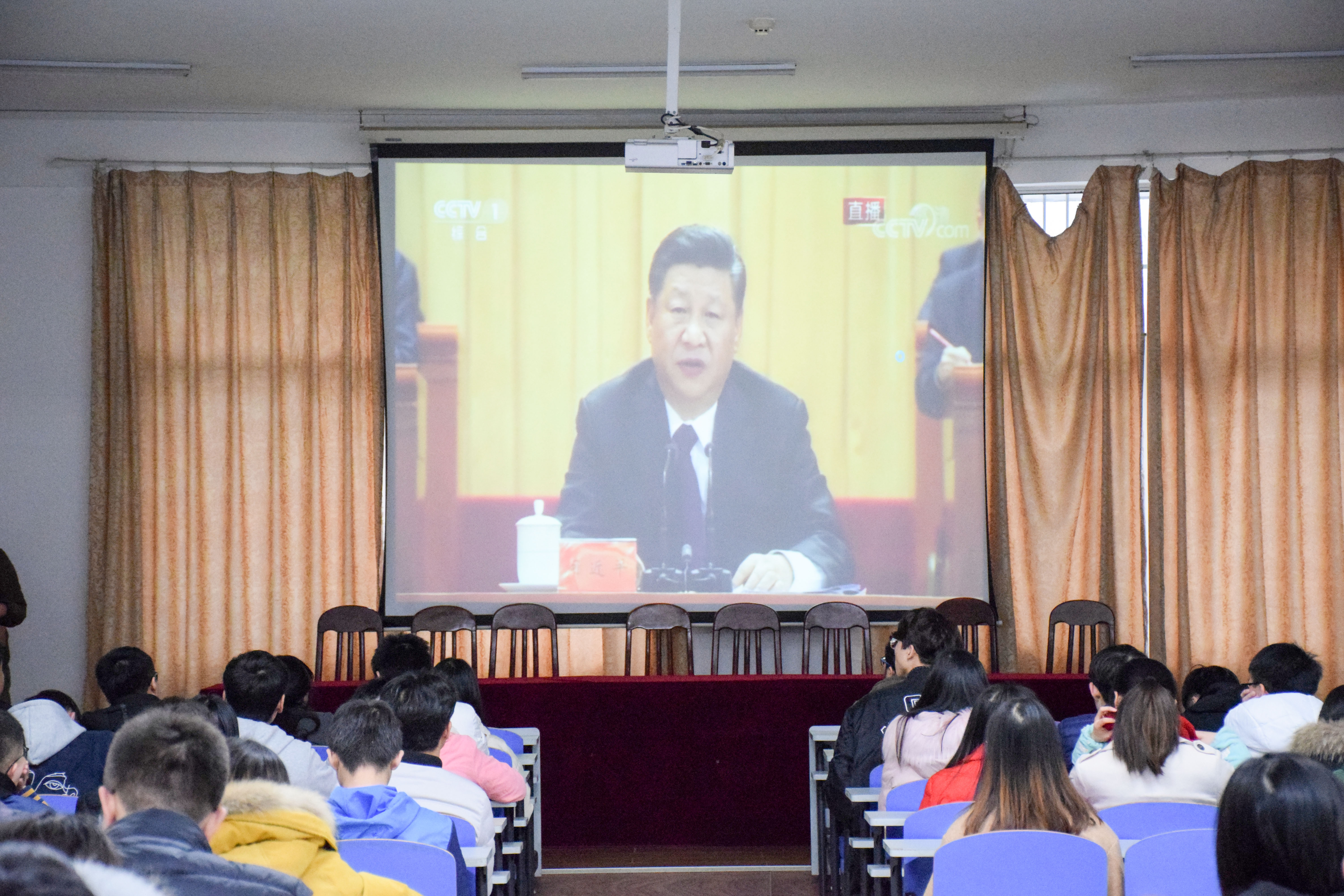12月25日下午3点,我院于逸夫楼108会议室组织党员观看学习习近平总书记在庆祝改革开放四十周年大会上的重要讲话。我院党委副书记周筱芬,学工办副主任肖爱军,辅导员陈苗苗出席,我院全体党员与会。本次会议由肖爱军主持。