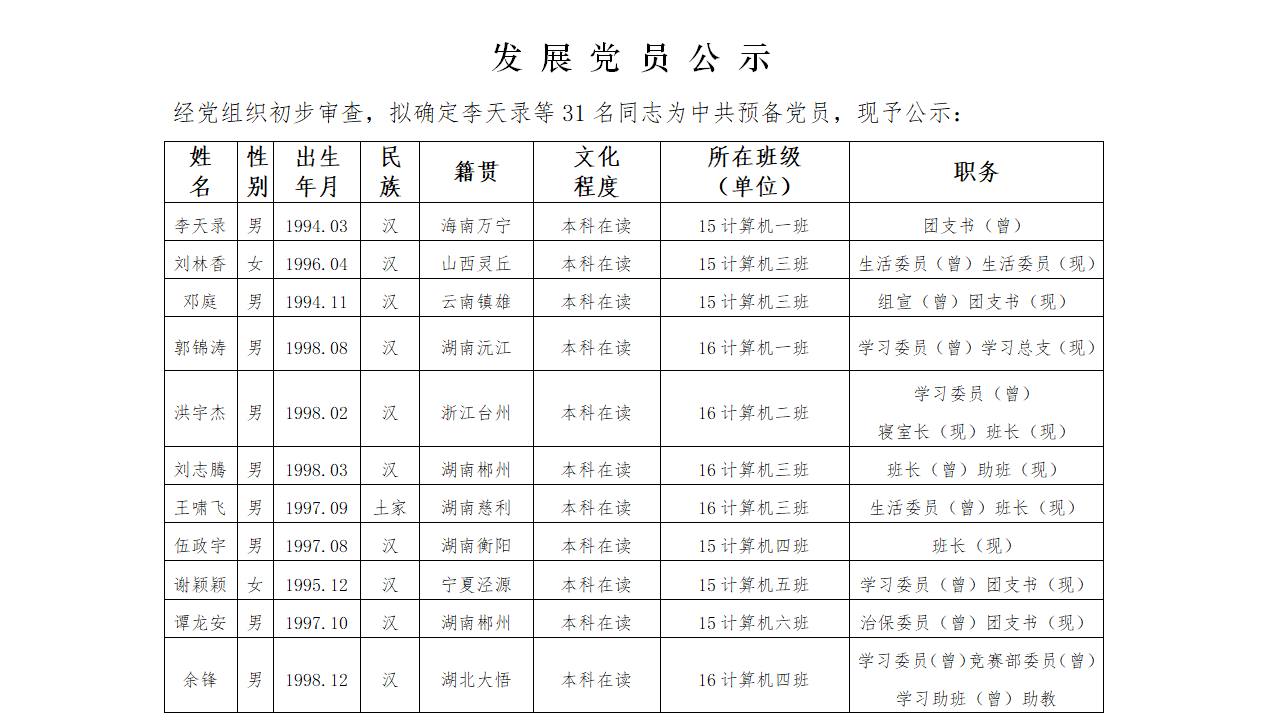 发展党员公示