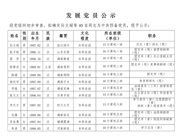 2018上半年发展党员公示