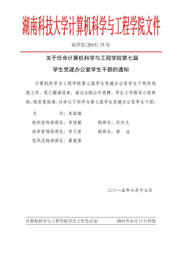 通知公告 您所在位置: 首页 > 通知公告 关于任命计算机学院第七届学生党建工作领导小组的通知 时间:2015-06-17 作者:团委学生会 访问量: 中国·yl23411(永利)集团官网-Official Website
