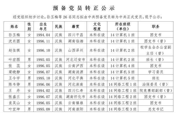 2017年下半年预备党员转正公示