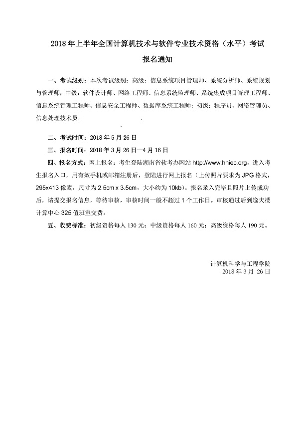 通知公告 您所在位置: 首页 > 通知公告 2018年上半年全国计算机技术与软件专业技术资格考试报名通知 时间:2018-03-27 作者:办公室 访问量: 中国·yl23411(永利)集团官网-Official Website