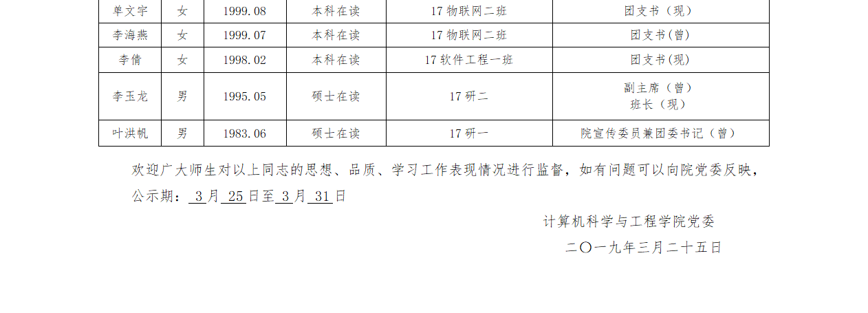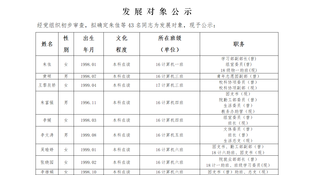发 展 对 象 公 示