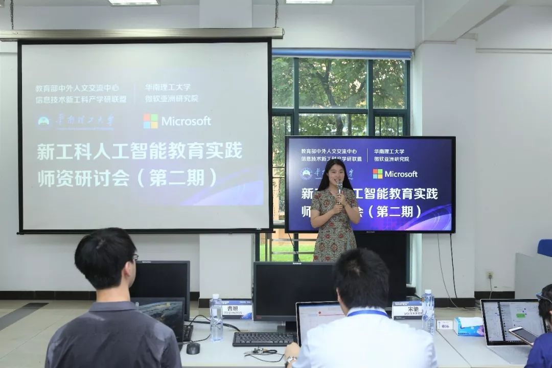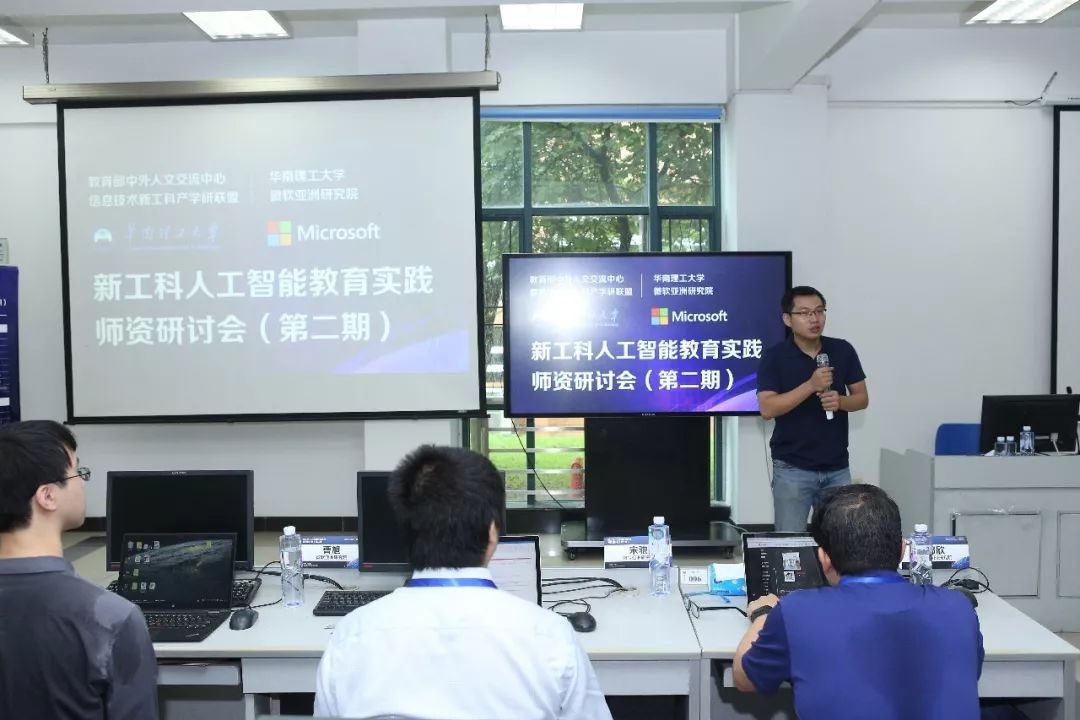 在此背景下,我院教师刘敏博士于2018年7月25日至28日赴广州参加了第二期新工科人工智能教育实践师资研讨会。本次研讨会由教育部中外人文交流中心、信息技术新工科产学研联盟共同指导,新工科联盟人工智能教育工作委员会担任主办方,华南理工大学与微软亚洲研究院联合承办。全国多所高校的教师积极参与,与资深研究员、行业专家面对面交流人工智能领域的教育教学经验,探讨未来人工智能应用案例在高等教育教学中的实践问题。