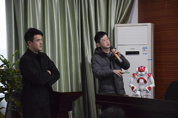 在交流环节中,何源博士耐心地解答在座师生从电网、水网预警等各个方面提出的疑问,现场氛围热烈。我院院长刘建勋教授对何源博士的解答表示真挚的感谢。最后,湖南省第大学生计算机程序设计竞赛机器人赛组委会的工作人员还为在座师生展示了法国NAO机器人的一些功能和编程原理。