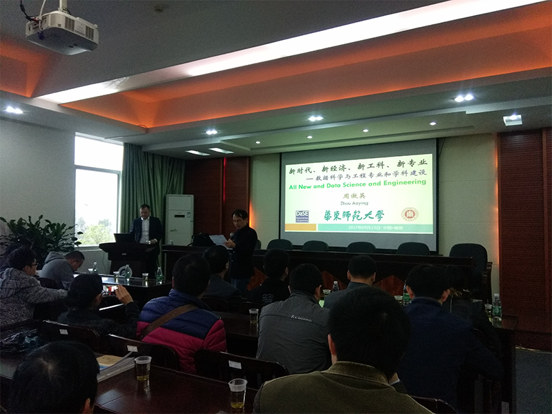 2017年11月17日下午,华东师范大学副校长、数据科学与工程学院院长周傲英教授应邀在逸夫楼201报告厅做了题为“新时代、新经济、新工科、新专业——数据科学与工程专业和学科建设”的精彩学术报告。永利yl23411老师和部分研究生、本科生参加了此次报告会,讲座由刘建勋院长主持。