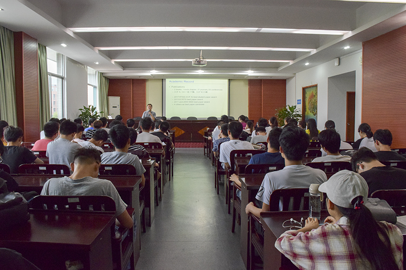 6月13日下午3点,应我院邀请,中组部青年千人计划学者,美国弗吉尼亚理工大学曾海波教授在逸夫楼201会议室作了题为"Dependable and Adaptive Cyber-physical Systems(可靠自适应的信息物理系统)"的精彩学术报告。我院院长刘建勋教授,湘潭大学信息工程学院副院长欧阳建权教授以及我院相关专业和研究所的30余位师生聆听了本次讲座,讲座由王晓亮博士主持。