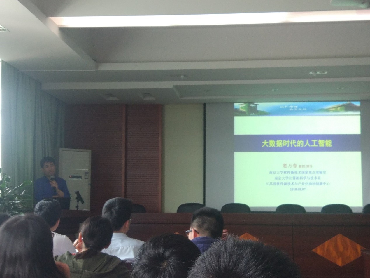 2018年5月7日下午,南京大学计算机科学与技术系窦万春教授应邀在逸夫楼201报告厅做了题为“大数据时代的人工智能”的精彩学术报告。永利yl23411老师和部分研究生、本科生参加了此次报告会,讲座由副院长周栋主持。