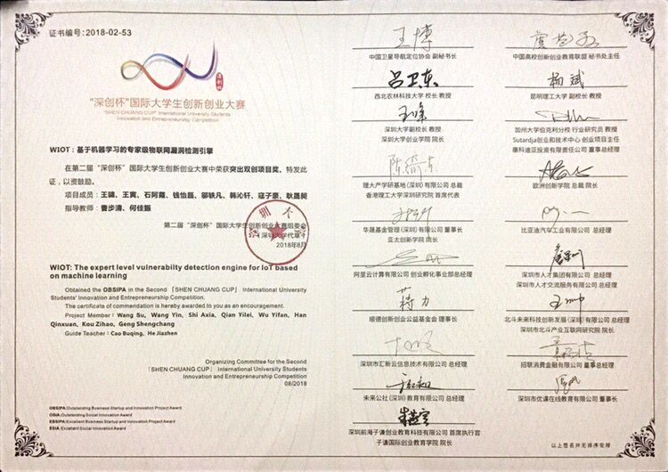 创新创业 获奖证书 您所在位置: 首页 > 学生工作 > 创新创业 > 获奖证书 ”深创杯“国际大学生创新创业大赛 突出双创项目奖 时间:2019-03-05 作者:网络部 访问量: 中国·yl23411(永利)集团官网-Official Website