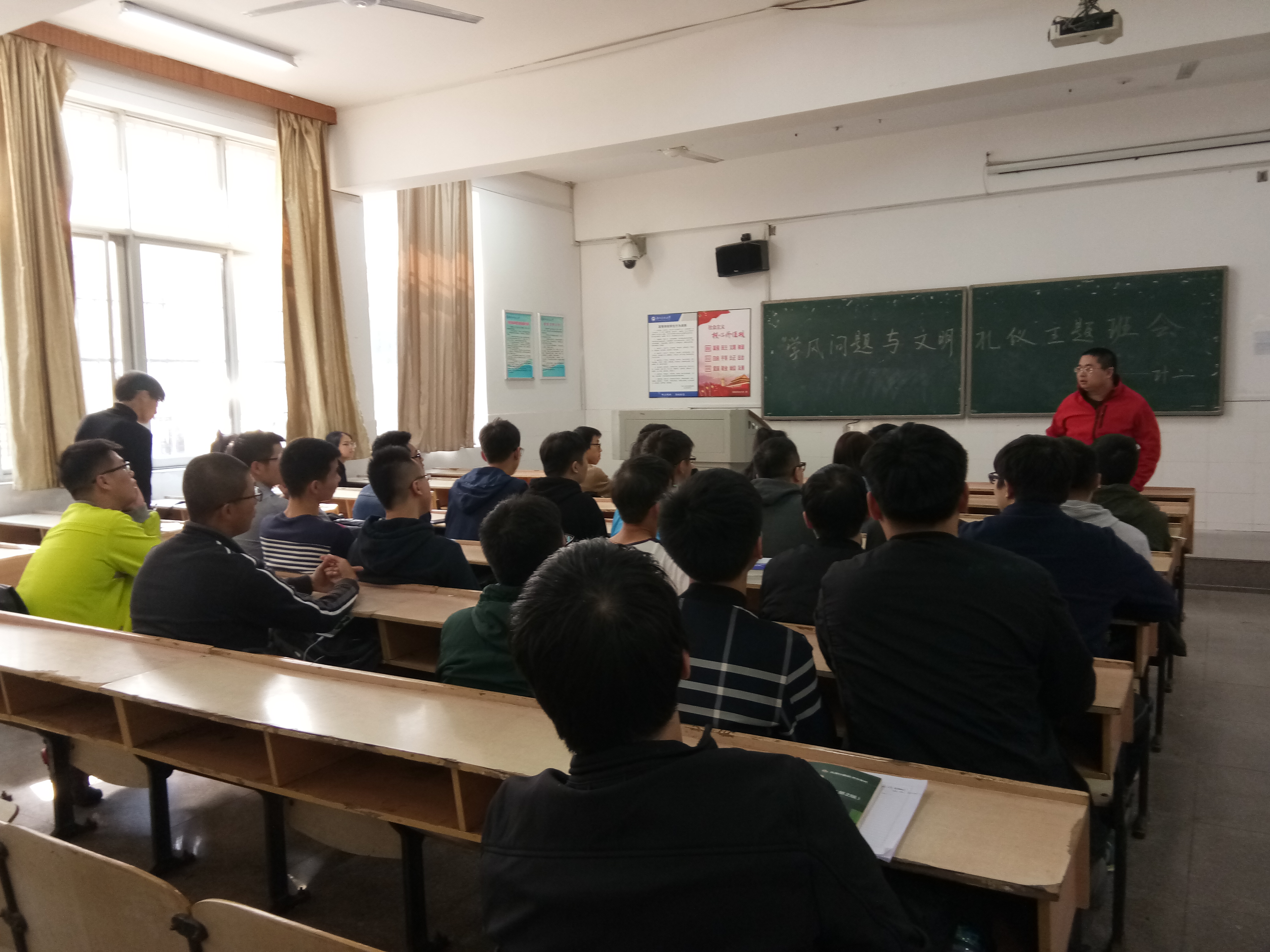 应学校号召,我院各年级于10月30日至11月5日召开了反思自我和学风建设主题班会。此次主题班会要求各班邀请班主任参加,各班同学积极参与到班会之中。