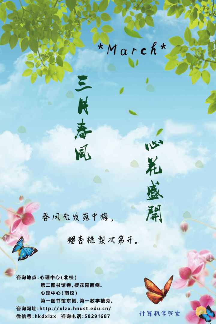 心理健康 心理海报 您所在位置: 首页 > 学生工作 > 心理健康 > 心理海报 心理海报(17年.03月) 时间:2019-03-07 作者:心理健康部 访问量: 中国·yl23411(永利)集团官网-Official Website *March* 三月春风 心花盛开 春风先发苑中梅,樱杏桃梨次第开。