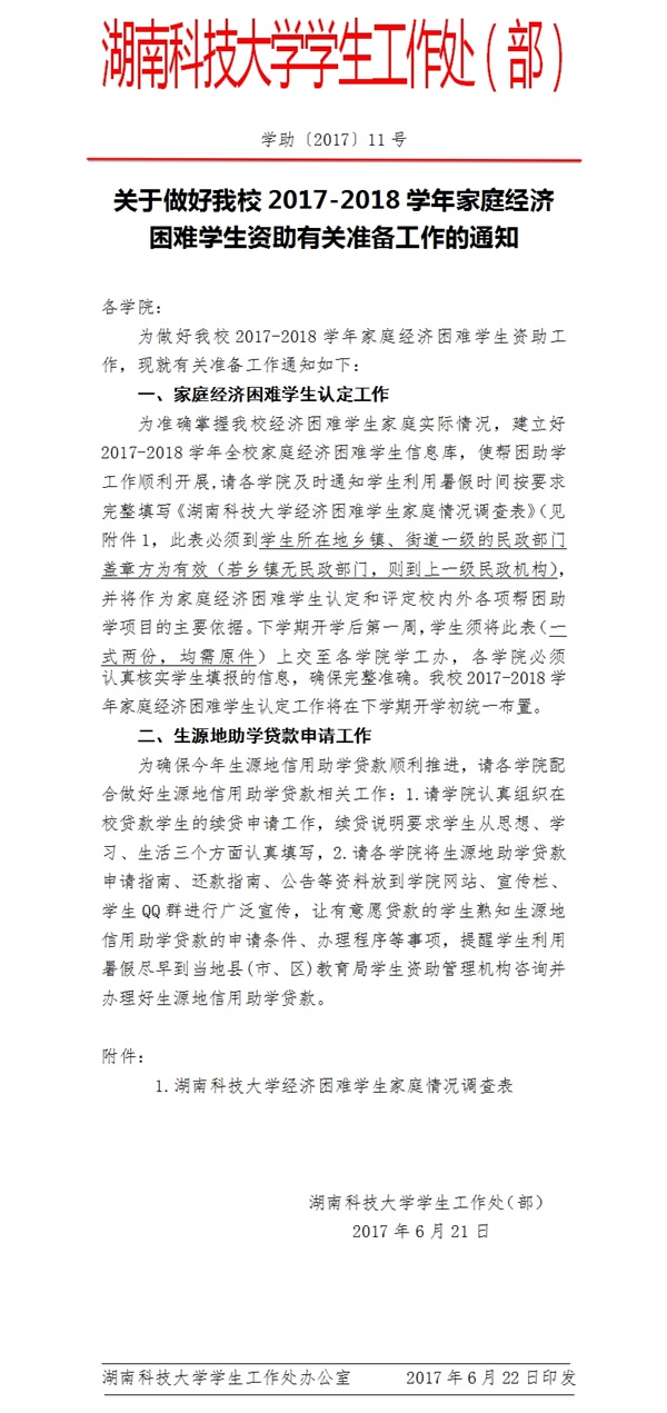 学生资助 国家助学金 您所在位置: 首页 > 学生工作 > 学生资助 > 国家助学金 关于做好我校2017-2018学年家庭经济困难学生资助准备工作的通知 时间:2019-03-12 作者:网络部 访问量: 中国·yl23411(永利)集团官网-Official Website 附件:永利yl23411经济困难学生家庭情况调查表