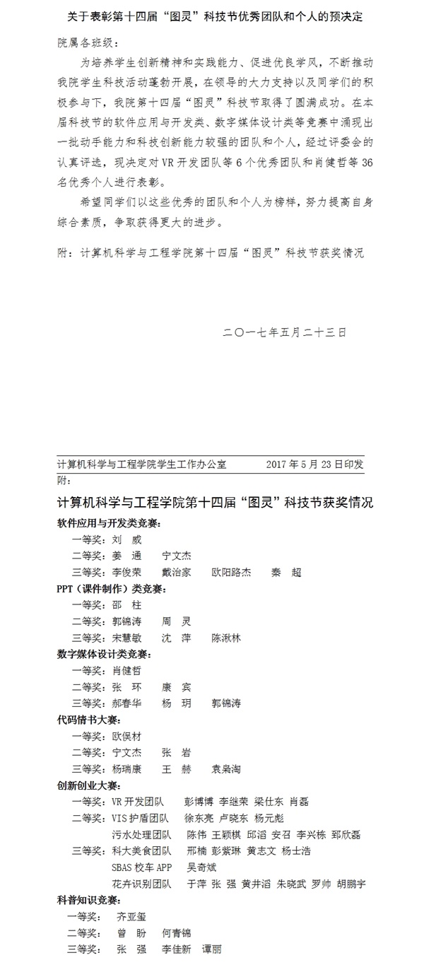 学子风采 表彰决定 您所在位置: 首页 > 学生工作 > 学子风采 > 表彰决定 关于表彰第十四届“图灵”科技节优秀团队和个人的预决定 时间:2019-03-06 作者:办公室 访问量: 中国·yl23411(永利)集团官网-Official Website