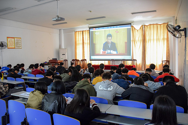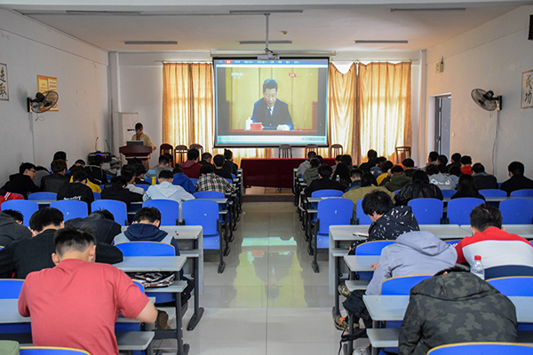 4月30日上午10点半,纪念五四运动一百周年大会在人民大会堂隆重举行。中共中央总书记、国家主席、中央军委主席习近平出席大会并发表重要讲话。为纪念即将到来的五四运动一百周年,引导同学们弘扬五四精神,向着新时代中国优秀青年的方向前进,我院特于逸夫楼108会议室组织收看此次大会的直播。我院18级辅导员魏庆龄出席,部分17级、18级学生共同观看。