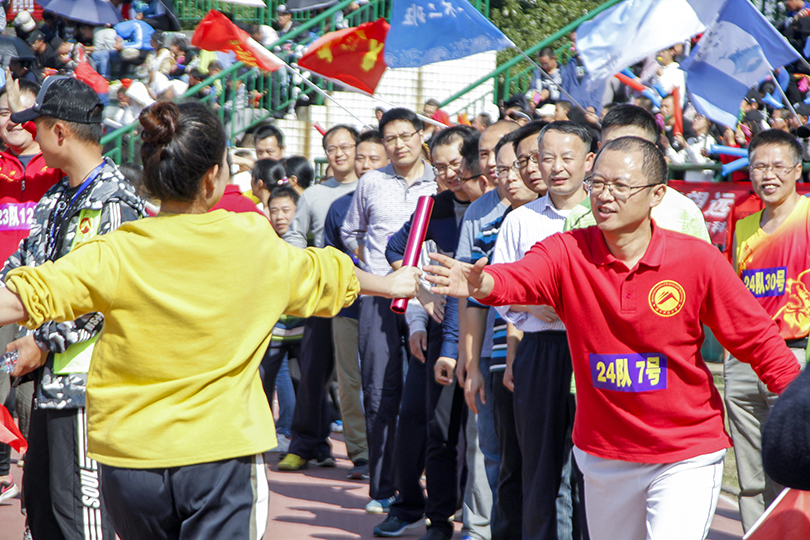 在闭幕式开始之前进行的是教职工比赛。田径场上,每一位老师笑容满面,精力充沛,朝气蓬勃。在比赛过程中,我院老师们个个全力投入力争第一,赛出了个人的风采,赛出了我院集体的凝聚力。随后闭幕式开始,校党委委员、统战部部长赵前程宣布此次体育道德风尚奖和教工优秀奖获奖名单并给予祝贺,其中我院荣获体育道德风尚奖和教工优秀奖。之后,运动会总裁判长敬龙军教授宣布了本次校运会的比赛成绩并由校领导对获奖单位进行了颁奖。最后,胡石其致辞,他表示,本次运动会是一次成功、精彩且文明的体育竞技活动。通过比赛,大家收获了成绩和友谊。同时,胡石其对18级新生寄予厚望,他希望同学们能把运动会上良好的精神风貌带到工作、学习和生活中去。