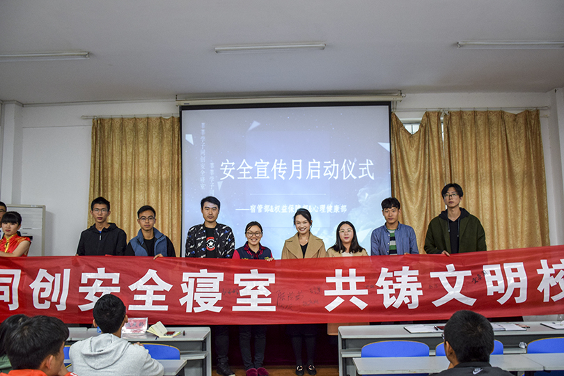 活动最后,各位老师和主席团成员在活动横幅上签字,并由主席团成员向各班团发放《安全管理规定承诺书》。至此,本次安全文明宣传月启动仪式暨心理健康教育安全知识讲座圆满结束。