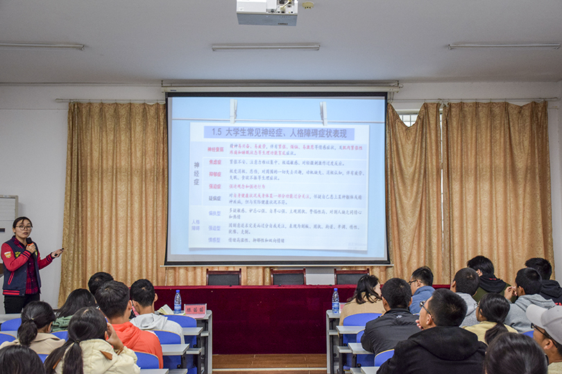 活动伊始,由陈佳男致开幕词。随后,陈苗苗为同学们做了心理健康知识培训讲座。陈苗苗先是对当下大学生心理健康问题、问题多发的原因、常见的表现以及心理疾病与生活的关系等知识进行了普及,再向寝室长们强调了其职位的重要性,并要求他们时刻关注舍友心理状态、培养良好的宿舍氛围。而后,魏庆龄再次提出班团与寝室长要重视同学间关系和寝室常规安全卫生问题,并担起应尽的职责。