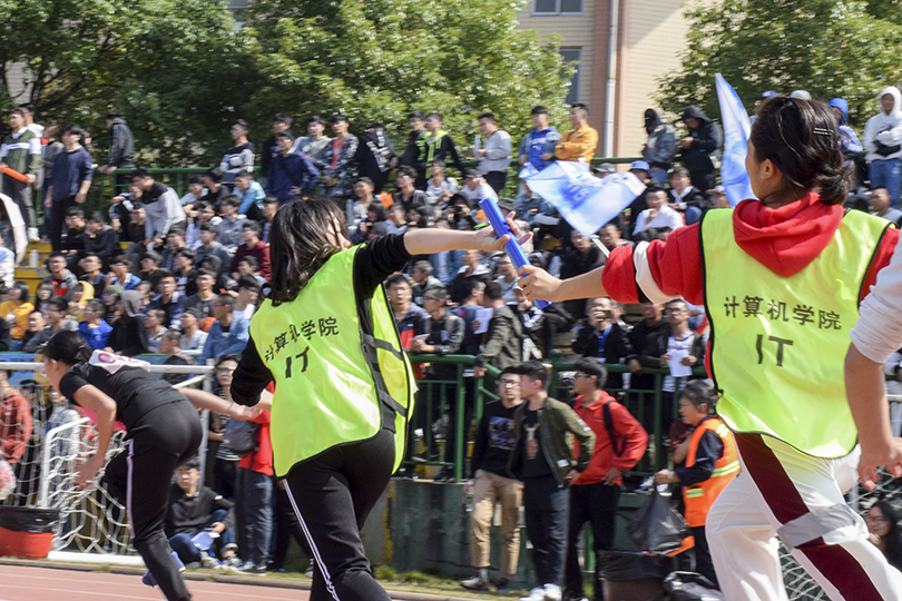 紧接着开始了一系列精彩绝伦的表演,我院党委副书记周筱芬以及其他老师参与了教职工优美的扇子舞蹈表演。随后,紧张激烈的比赛拉开帷幕。我院参加跑步比赛的选手,一个个都如离弦的箭,飞速地奔驰于赛场之中,向着胜利的终点奋勇前行。观众席上,每一位同学都高喊着我院的口号"IT学子,坚毅刚强;百舸争流,唯我领航。”一句句的加油呐喊声,都是对计算机学院团结精神的完美诠释,给予运动员们强大的精神力量。