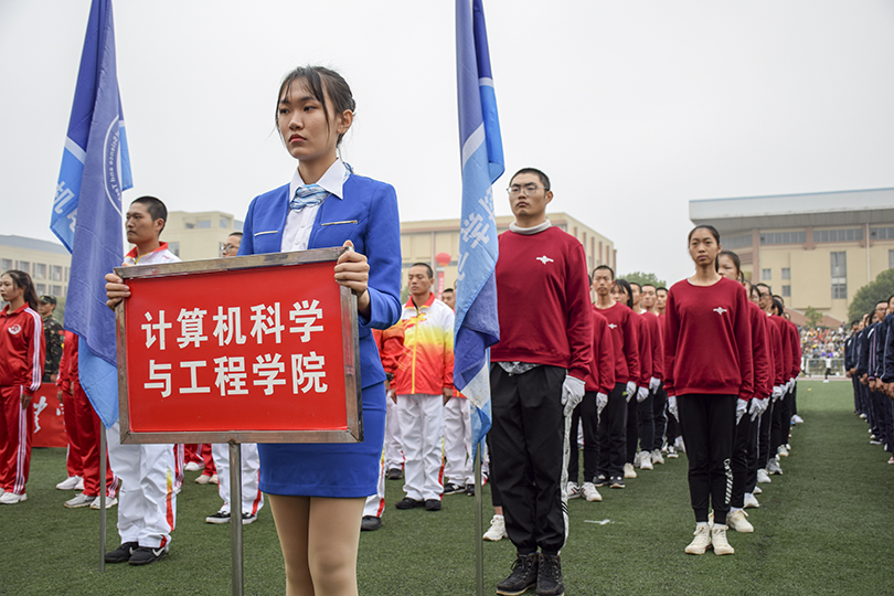 在激昂的音乐声中,我校19个学院方阵队带来了各具特色入场式,那迈着整齐的步伐,穿着深红上衣走来的,正是我院的方阵队。他们挺立的身姿昭示着IT学子敢于挑战、勇于突破、奋发向上、积极进取的精神。而后,校长李伯超致辞,在运动员代表、裁判员代表宣誓后,李伯超宣布运动会正式开幕。
