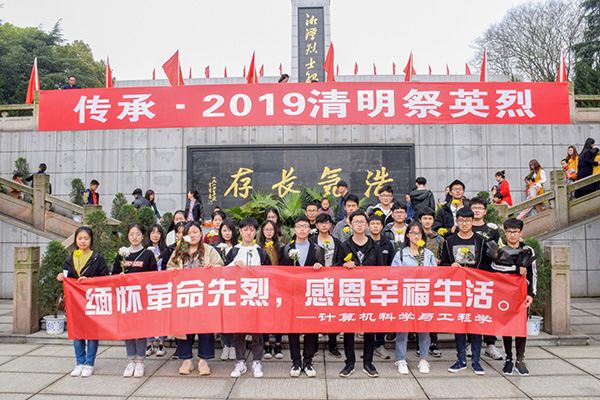 为缅怀革命先烈,加强爱国主义教育,促进校园精神文明建设,4月5日上午10点,我院于湘潭市烈士陵园举行了以“缅怀革命先烈,感恩幸福生活”为主题的清明祭奠英烈活动。我院权益保障部、学习部成员及17、18级部分学生参加本次活动。