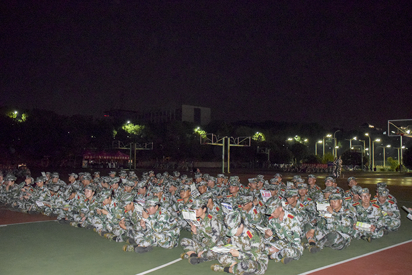 “强军目标召唤在前方,国要强,我们就要担当。唱!”教官们一句一句教唱军歌,也许是被教官脸上坚定的神情,眼眸中的闪烁所震撼了,同学们都一字一句的学的极为认真积极,使得夜晚军训不再枯燥乏味,更推进了集训进程的高潮。