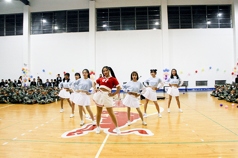 短暂的视频带新生们回顾了这十二天的军训生活后,我院军训合唱团带来了节目《强军战歌》、《歌唱祖国》,雄壮的歌声在会场回荡。歌声还未散去,由拉拉队带来的舞蹈赚足了眼球。节目一个个上演,现场气氛十分活跃。最后各班助班带来的神秘节目,双人走秀和合唱军训版成都彻底引爆全场,同学们的欢呼声不绝于耳。