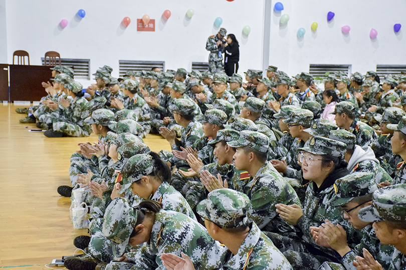 首先,周筱芬对新生军训生活的顺利结束感到非常欣慰,并说道:“在教官的严格要求和大家的共同努力下,我院取得了内务第一、宣传第二、军容军纪第三的好成绩,这让我感到非常的惊喜和意外。”同时,她还希望经过此次军训后,同学们会对学院附有归属感。随后,魏庆龄对比了新生军训前后,点明了新生的变化。此外,她还以学姐的身份,对大家抱有期望,希望大家不要给自己的人生设限制,要在以后的大学生活中体验到不同的东西。紧接着,罗志洋表示自己有幸能成为本次新生军训的教官,并对18级新生的军训表现提出了表扬。他也对新生们提出建议:在不影响学业的前提下,以不同的身份进行多种尝试,去锻炼自己各方面的能力,并预祝新生们的大学生活一切顺利。
