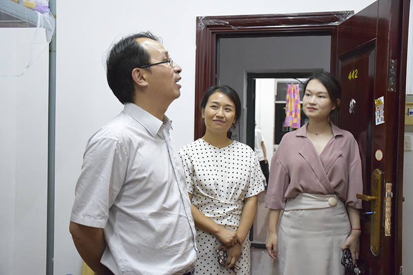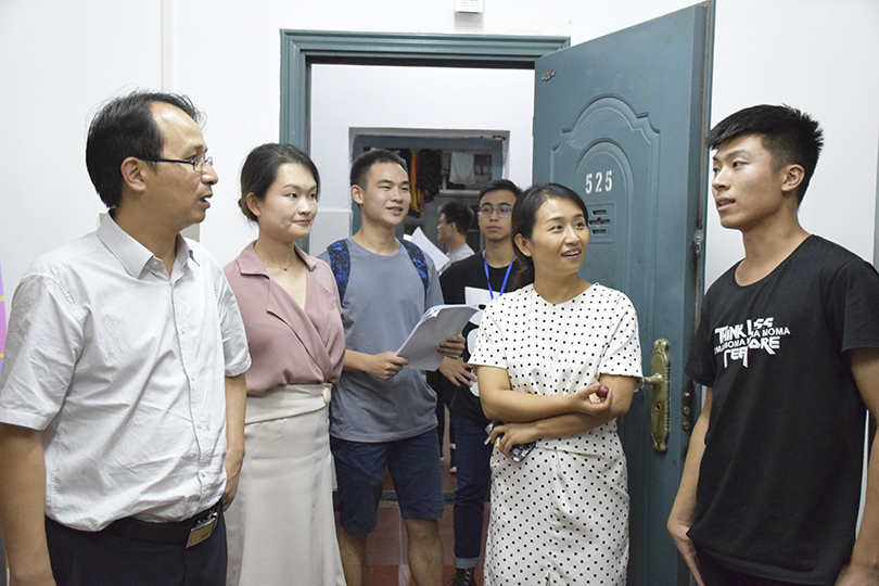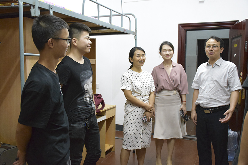 9月8日晚上8点,在我院学生干部的陪同下,院长刘建勋,院党委副书记周筱芬,18级辅导员魏庆龄走访我院新生宿舍仔细了解新生入住情况,并为新生送去慰问和关切。