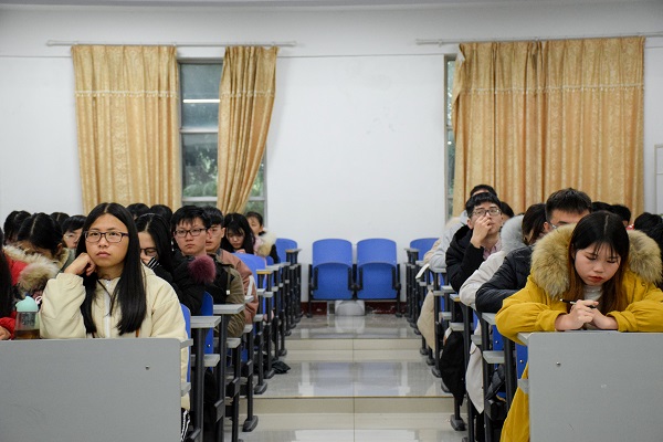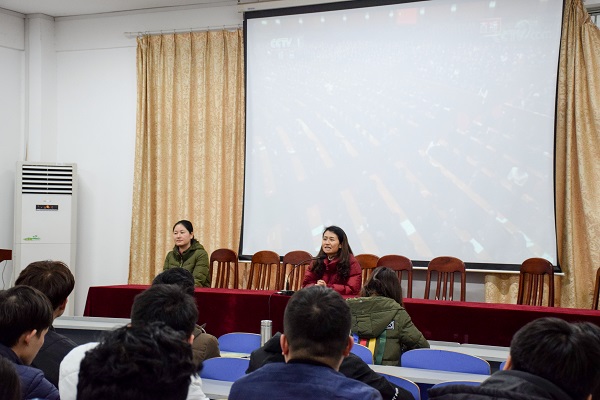 12月25日下午3点,我院于逸夫楼108会议室组织党员观看学习习近平总书记在庆祝改革开放四十周年大会上的重要讲话。我院党委副书记周筱芬,学工办副主任肖爱军,辅导员陈苗苗出席,我院全体党员与会。本次会议由肖爱军主持。