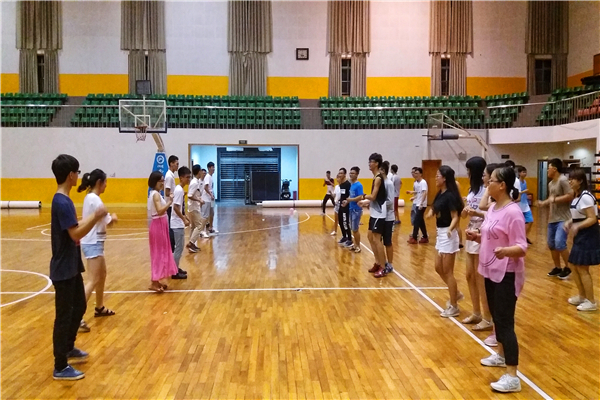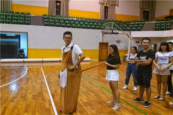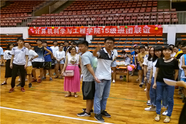 活动开始,新老班团以及总支被分成三组进行互动游戏,游戏由“德--背靠背夹气球”、“智--一块五毛”、“体--袋鼠跳”、三类组成,游戏过程中,新老班团、总支们团结合作同时又竞争激烈,充分展现了15级学生干部的新风貌。游戏结束后,陈老师也与同学们一起跳舞,大家互相交流,积极地融入集体,气氛活跃融洽。