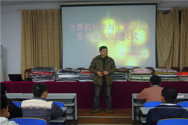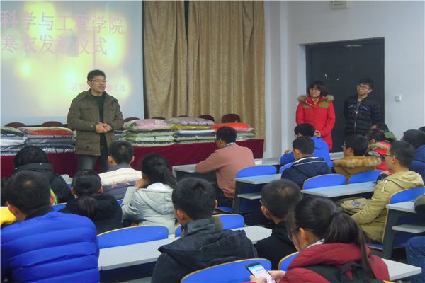 首先,吴老师指出同学们应常怀感恩之心,认真刻苦学习,并强调到不要因家境困难而妄自菲薄,要自立自强。紧接着,吴老师和陈苗苗老师分别为32名受助新生发放了时尚棉衣,为他们送去寒冬的温暖。