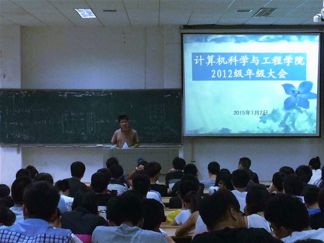 7月2日晚,我院2012级期末年级大会在五教2-2室召开。负责学院就业工作的学工办主任吴成义、12级辅导员老师易靓靓以及12级全体学生参加了本次大会。