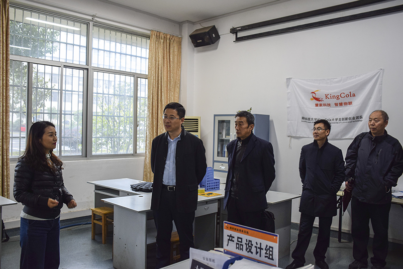 在周筱芬的带领下,北京高校就业指导中心一行人首先参观了我院微科基地成果展示区,了解到我院微科基地的基本情况及所取得的成绩。而后,领导们参观了微科逐梦办公室及“唯实”、“惟新”、“至诚”、“致志”、“立德”五个创客工作室。在参观过程,领导们观看了我院同学们的研究成果,对基地内创业研发团队有了深入的了解,并对正在努力学习的团队成员表示赞扬。