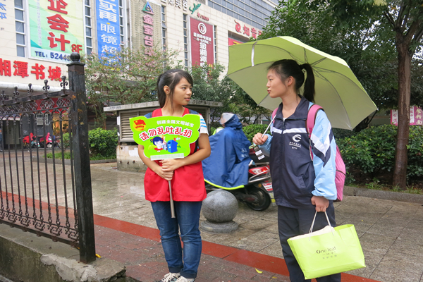 为积极响应校团委关于助力湘潭市委、市政府创建全国文明城市的号召,开展一系列城市文明志愿服务行动,引导广大团员青年以志愿服务的方式积极参与和支持创建全国文明城市,我院组织青年志愿者于9月1日上午7时赶赴汽车总站附近开展了以“文明劝导,共树新风”为主题的志愿活动。