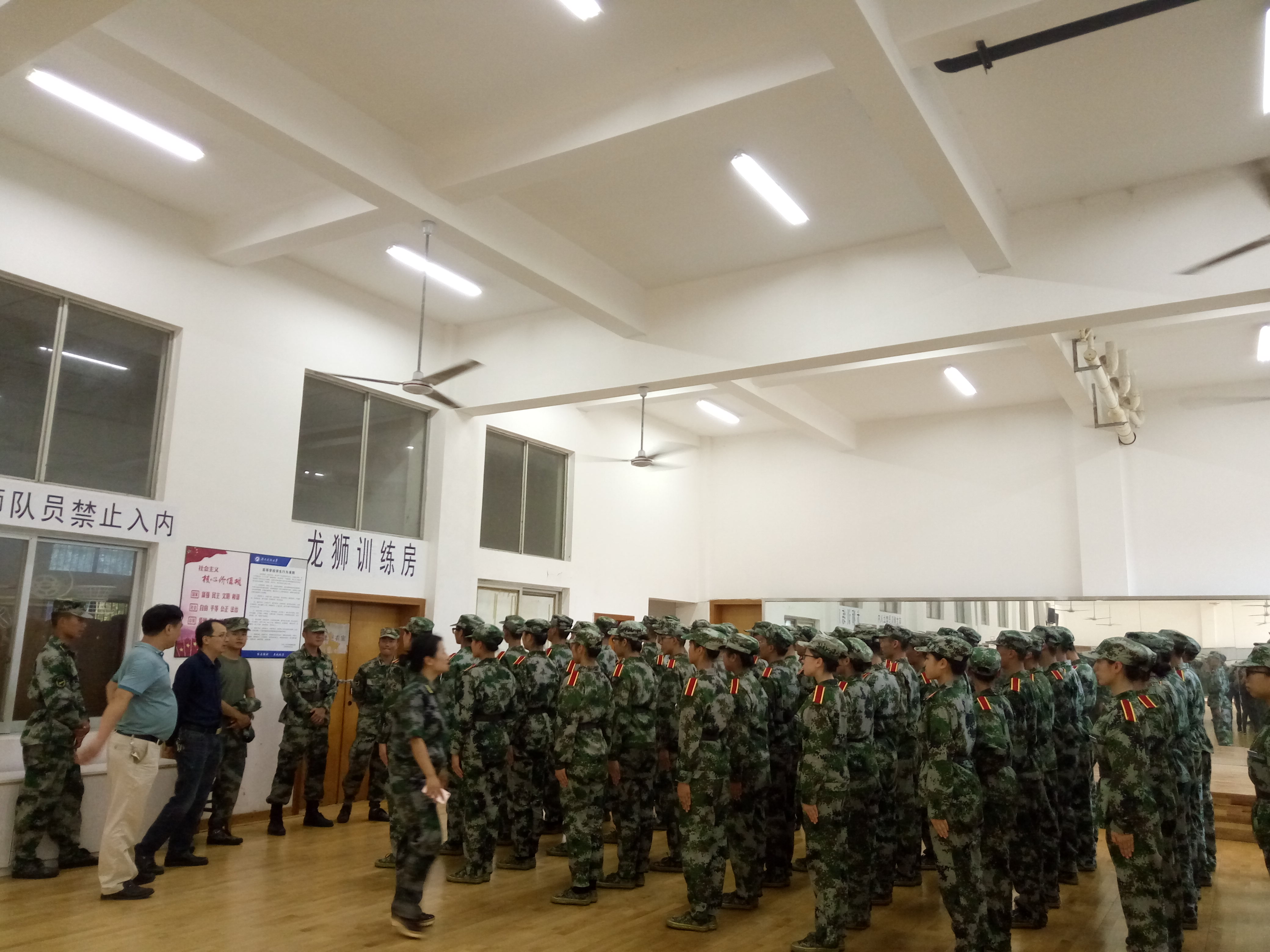最后在方阵队的训练场上,老师们对即将要进行方阵队比赛的方阵队队员们进行加油鼓劲,希望同学们比赛前能够放松心情,轻松面对;比赛时能够以最好的状态将所训练的内容发挥出来,不让自己留下遗憾;比赛后无论结果如何,都选择看淡,因为已经努力过了。同时也希望同学们能够为学院争光,争取发扬学院不屈不挠、坚忍不拔的精神。