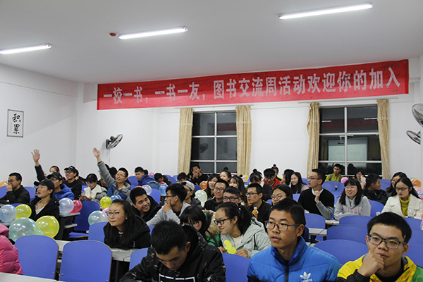 活动开始之前由袁东统为此次宣讲会致辞,他鼓励大家要多读书,读好书,成为一个优秀的读书人。随后主持人宣布读书交流宣讲会正式开始。首先播放了图书交流周的精彩剪影,体现出了科大学子与书为伴,热爱阅读的优秀品质。之后的有奖竞猜环节,充分调动了同学们的积极性,会场气氛十分活跃。会上,我院巨凤同学为爱读书的同学们推荐了一款名为“萝卜书摘”的APP,以提高同学们网上阅读的质量。宣讲会接近尾声,同学们用空白便签写下自己的感悟和书摘以作留念。在同学们积极的参与和饱满的热情中,此次图书交流宣讲会圆满结束。
