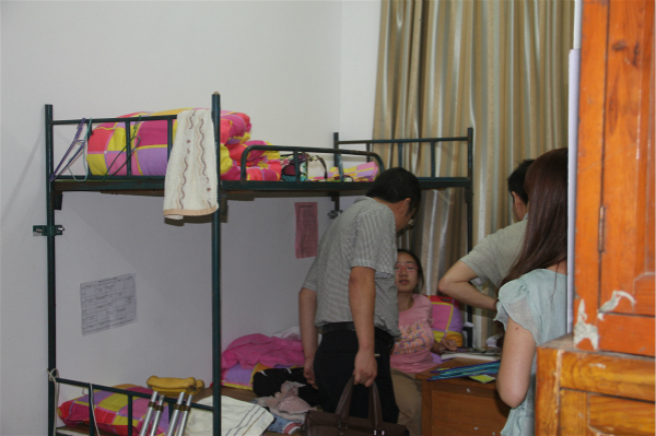 廖莎莉患有先天性脆骨症,身高只有1.15米,行动不便。学院领导对此非常重视,第一时间向学校反映了情况,廖莉莎目前所住的119寝室就是专门为廖莎莉安排的,铺位也是为廖莎莉及其母亲专门设置的。