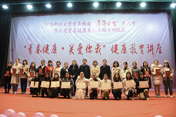 而后,谭丽君宣读我校优秀贫困女生名单,由在场领导为优秀贫困女生颁发慰问金。为了能够及时、准确地向我校女生传递和普及健康生活小常识,解决女生日常保健中存在的困惑,我校与湘潭市妇幼保健院的密切合作,聘任了一批女生保健员,并由在场领导为各学院女生保健员颁发聘书。