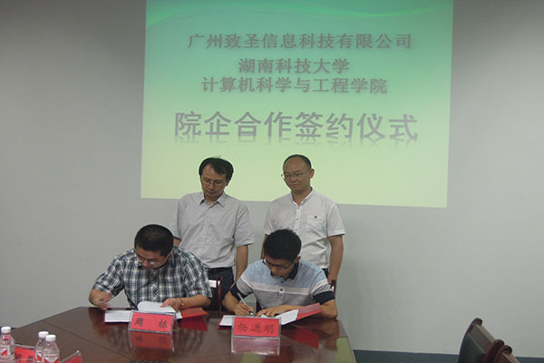 6月30日上午,我院与广州致圣信息科技有限公司合作签约仪式在逸夫楼210会议室隆重举行,永利yl23411刘建勋院长,院党委刘红阳书记,胡勇华、龚波、周栋副院长,院党委周筱芬副书记及公司代表蒋艳、杨送明出席签约仪式,胡勇华、龚波、周栋副院长分别代表学院与广州致圣信息科技有限公司杨送明总经理签订了相关合作协议。此次签约达成就人才培养、学术研究、工程研发等方面的合作和发展,为双方互赢共赢提供了有力的平台支撑。