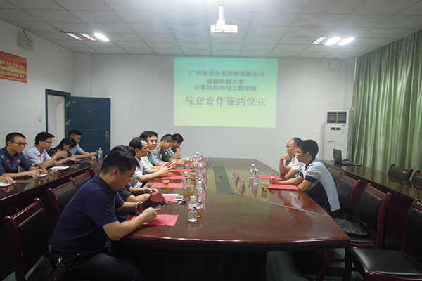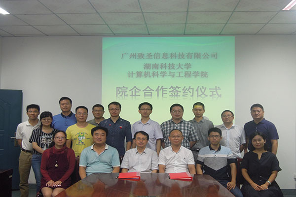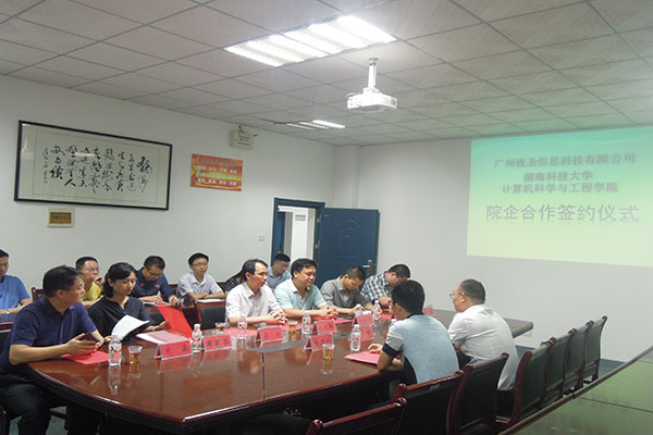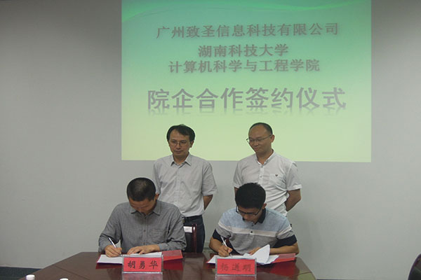 签约仪式开始后,计算机学院院长刘建勋和广州致圣集团业务总监蒋艳先后致词,刘建勋院长称赞了致圣信息在信息领域为社会做出的巨大贡献,同时也介绍了我院在人才培养、学科科研等方面取得的新进展。