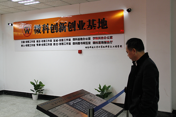 11月15日下午四点,湘潭市科技局高新科科长吴建国、学工处处长尹风雨、招就处处长蒋利平一行莅临我院,在院党委副书记周筱芬的陪同下深入考察微科创新创业基地。