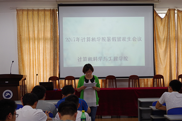 学院新闻 您所在位置: 首页 > 学院新闻 我院召开2017年暑期留校生会议 时间:2017-07-05 作者:团委宣传部 访问量: 中国·yl23411(永利)集团官网-Official Website 7月5日上午10点,我院于逸夫楼108室召开2017年计算机学院暑期留校生会议。辅导员老师陈苗苗出席并主持会议,全体暑期留校生参加此次会议。 会议开始,陈老师宣读暑假留校的相关注意事项,其次向同学们说明了暑期学校以及学院的相关工作安排。 最后陈老师强调,暑期留校期间,不论是学习还是工作,都要注意自己的人身安全,严格遵守相应规章制度,提高自我安全防范意识,并祝愿大家能有个充实愉快的假期。 文\袁枭淘 图\袁枭淘 责任编辑:王海力