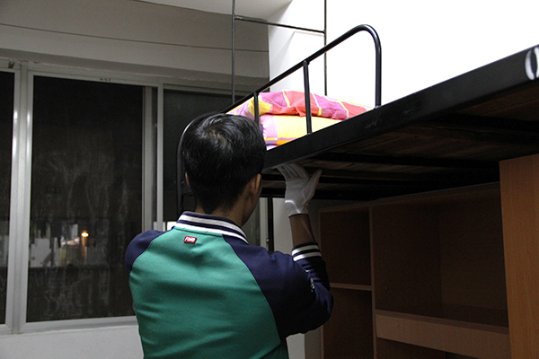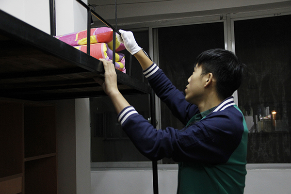 短暂忙碌过后,等待着新生们的便是永利yl23411团委学生会干部对内务的严格检查。团委学生会的干部们戴上了白手套,他们成了最严厉的检察官,严格把关,不放过任何一个细节,以最严肃的态度来对待卫生检查,争取将所有新生没有注意到的卫生问题发现出来并提醒新生将这些死角重新清理。全体团委学生会干部做到精益求精,为的就是能够让新生们重视内务卫生的整理,从而严以律己,得到真正的锻炼。
