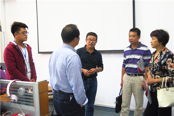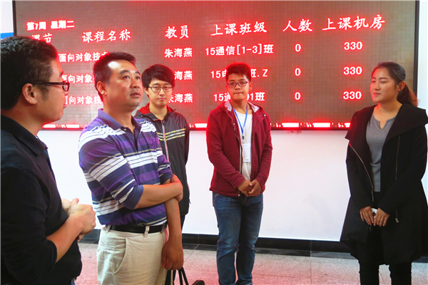 考核组首先参观了我院微科创新创业基地成果展示区,询问了“微科”二字所蕴含的意义,得到满意答复后参观了基地文化长廊,了解了到各创业团队的基本信息,并对长廊的用心布置表示称赞。然后进入创业研发团队实验室和ACM实验室深入了解我院各创新创业团队情况,并与团队成员亲切交流,对基地有了更加深入的了解。