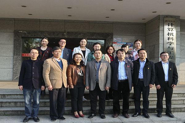 在解说员的带领下,汤立斌一行首先参观了我院微科基地成果展示区,了解到我院微科基地的基本情况及所取得的成绩,对“微科”所蕴含的意义有了深刻体会。而后,参观了微科逐梦工作室及以校训为特色命名的“唯实”、“惟新”、“至诚”、“致志”、“立德”创客工作室。期间,我院优秀学生洪泽才和王骕分别就创新创业和项目开发等进行了解说展示。最后汤立斌一行在逸夫楼门前合影留念。