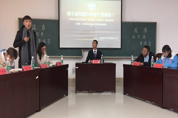 12月2日下午15点30分,为了让永利yl23411的同学们更好的了解辩论赛的流程,我院诚邀资源环境与安全工程学院辩论队在逸夫楼501举办了辩论表演赛。
