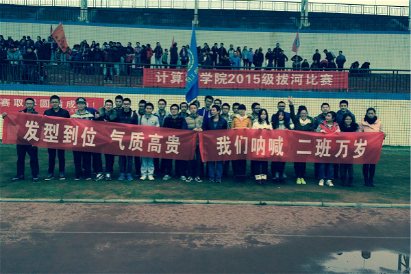 12月19日下午,我院在北校新田径场举行了2015级拔河比赛,学工办主任吴成义,2015级辅导员老师陈苗苗,各班班主任及15级全体学生全员参与。