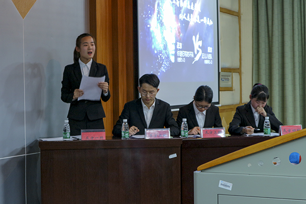 3月30日晚上7点,我院“文采飞扬,才辩无双”辩论赛总决赛在第五教学楼2-4隆重举行。17级辅导员老师王艺蓉,17级班主任阳峰、李雄以及兼职辅导员张政到场观赛。此次辩论赛由外国语学院、法管学院、教育学院的辩论队队长及我院学生会副主席钟理龙担任评委。比赛由17级软件工程2班陈佳男主持。