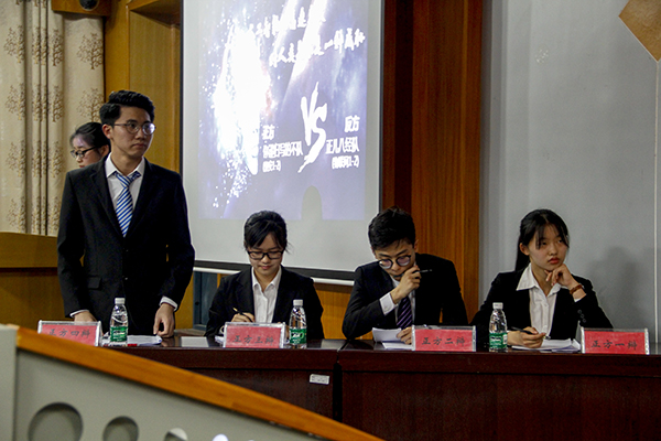 本次比赛在两支队伍亲友团的加油助威中正式拉开序幕。由物联网工程1班、2班组成的“正儿八经队”和由信息安全1班、2班组成的“你递归写的不队”围绕“人工智能的高速发展是不是一种威胁”展开辩论。首先,由正方、反方分别进行的自我介绍后,比赛进入开篇立论环节,双方一辩分别就辩题进行了陈词立论。其次是最为激烈的攻辩和自由辩,双方辩手争锋相对,抓住突破口,或一针见血,或循循善诱,将比赛一次次推向高潮。赛场气氛紧张,场上辩手你来我往,场下观众反应热烈,掌声连连响起。在一番激烈的角逐后,外国语学院辩论队队长杜书晶对选手们的表现进行了点评并给出了意见。其后,由王艺蓉对本届比赛优秀辩手及冠亚季军进行颁奖,前三名依次是物联网1班、2班组成的“正儿八经队”、信息安全1班、2班组成的“你递归写的不队”以及计算机科学与技术1班、2班组成的“黑马非马”队。