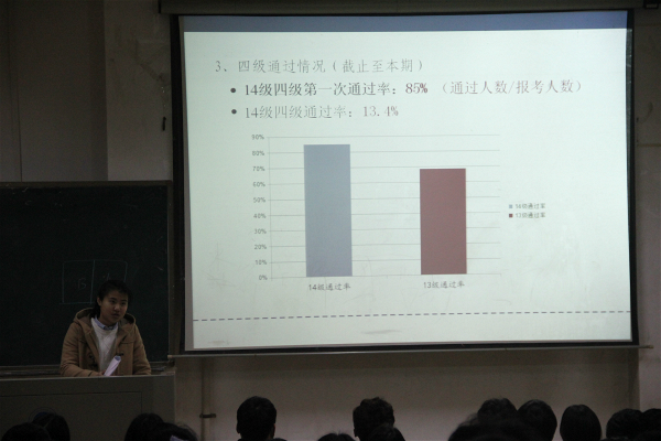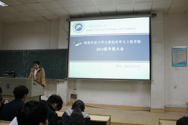 1月4日晚,我院于五教2-1召开2014级年级大会。会议由2014级辅导员老师万格格主持,我院全体2014级同学与会。